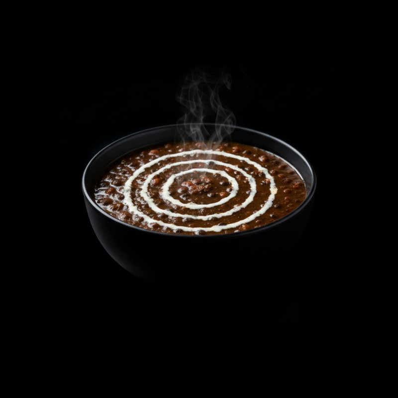 Black lentils slow-cooked overnight, finished with fresh cream and a distinct wisp of tandoor smoke.